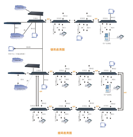 華光高科電子有限公司近期推向市場的新產(chǎn)品系列,它包括主端箱、輔端箱、中繼箱和音頻擴(kuò)展箱、2M擴(kuò)展箱5種主要設(shè)備。這些設(shè)備的不同組合,可以組成點(diǎn)對(duì)點(diǎn)、鏈型、環(huán)型不同的網(wǎng)絡(luò)拓?fù)浣Y(jié)構(gòu),連接環(huán)型網(wǎng)絡(luò)時(shí),具有自愈保護(hù)功能(保護(hù)倒換時(shí)間小于50ms)。能實(shí)現(xiàn) 2M、10/100M以太網(wǎng)、2/4線音頻、FXO和FXS 等多種業(yè)務(wù)接口的綜合傳輸。這些設(shè)備都采用19英寸1U 標(biāo)準(zhǔn)機(jī)箱,統(tǒng)一網(wǎng)管,易于安裝,便于維護(hù),并且具有完善的網(wǎng)管告警功能和環(huán)回測試功能,可用于廣電、各電信運(yùn)營商的公用網(wǎng)和公安、部隊(duì)、電力、鐵路公路交通、金融、政府及具有分支機(jī)構(gòu)的企事業(yè)單位的專用網(wǎng)。特別是對(duì)于10/100M以太網(wǎng)接口要求較多、可靠性高、有自愈保護(hù)功能、以太網(wǎng)傳輸通道需要相互獨(dú)立的應(yīng)用場合,具有明顯的優(yōu)勢。